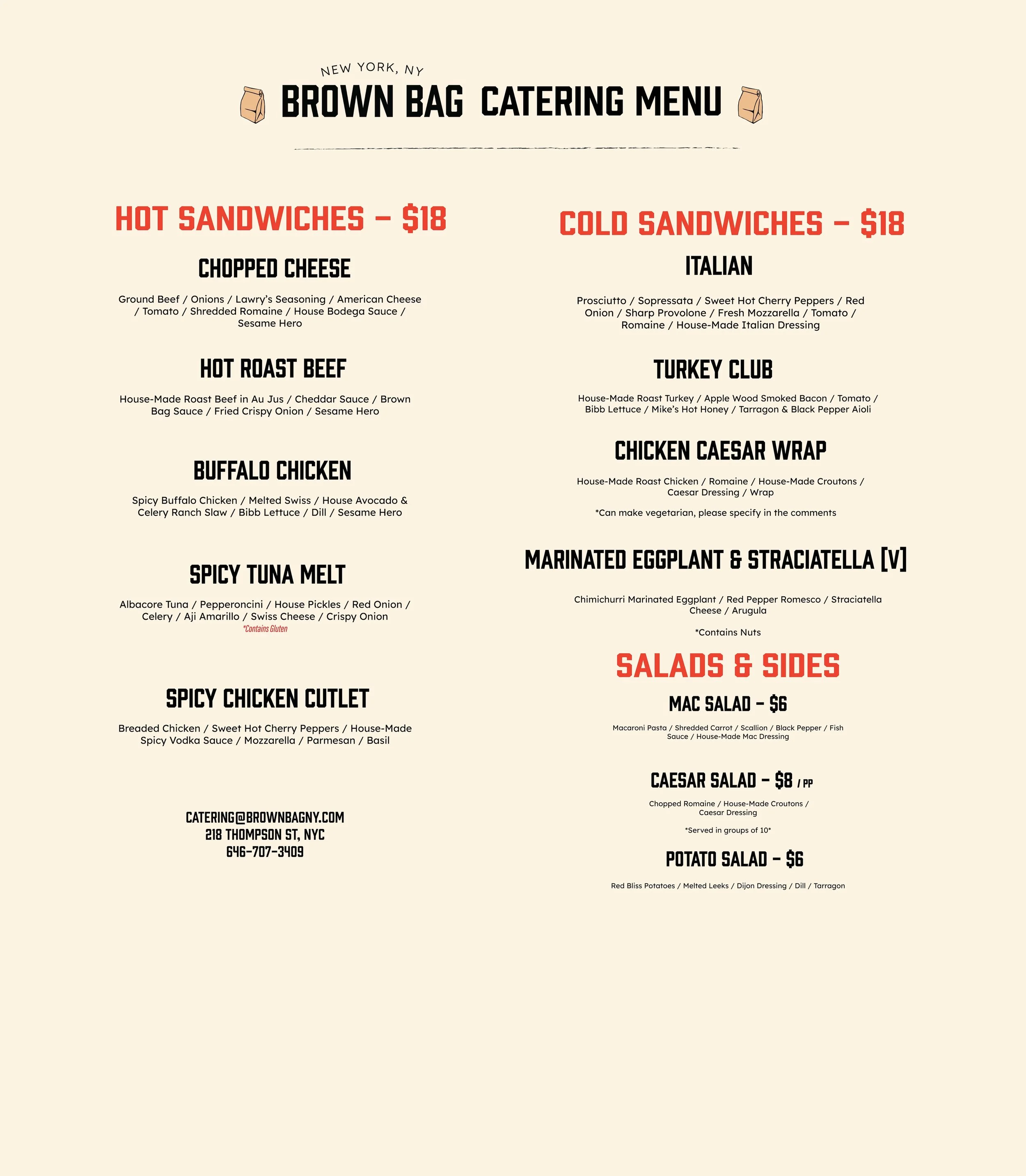 Whether for a catered lunch or company happy hour, get Brown Bag’s unique, gourmet sandwiches catered directly to your office quickly and hassle free. Space is limited each week, make sure to order today!